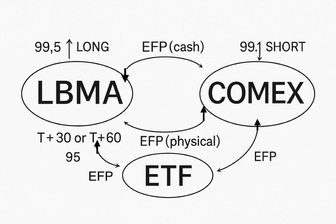 The Exchange for Physical (EFP) is a key, privately negotiated transaction that allows institutions to swap a futures position for a physical metal position. When the price difference between London and New York becomes this large, it triggers a major arbitrage opportunity for large institutions, often referred to as Bullion Banks.